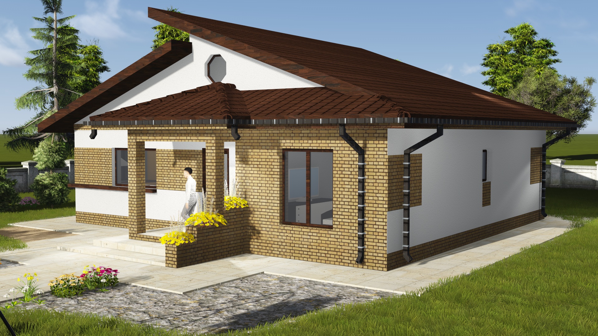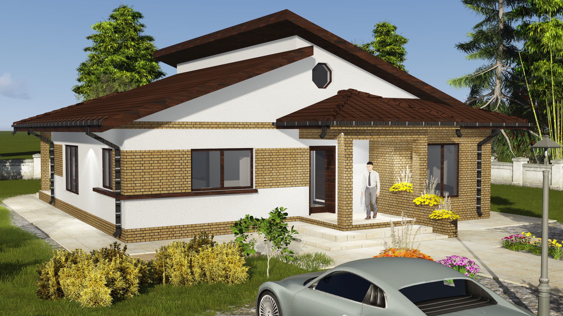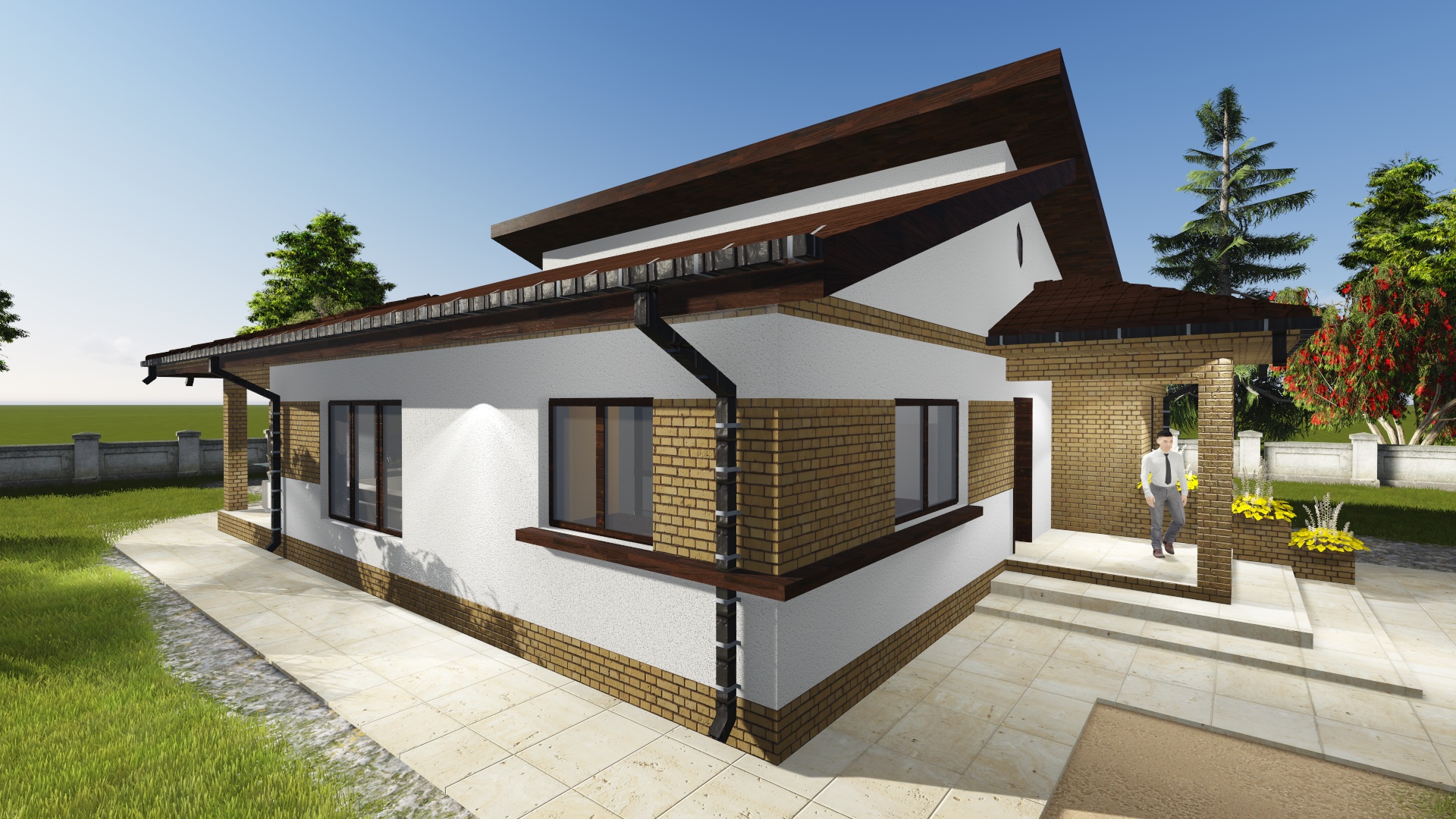 Modelul IOV-002 face parte din categoria proiectelor de case parter moderne, fiind o locuință compactă, eficientă și elegantă. Cu o suprafață desfășurată de 150 mp și o suprafață utilă de 100 mp, casa oferă tot confortul unei familii mici, la costuri de construcție și întreținere reduse.