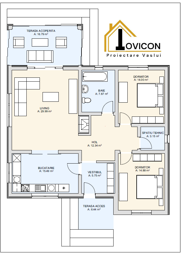 | Terasa acoperită lateral | 16,79 | mp |