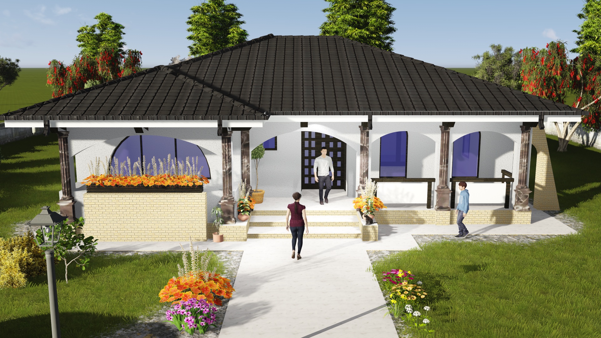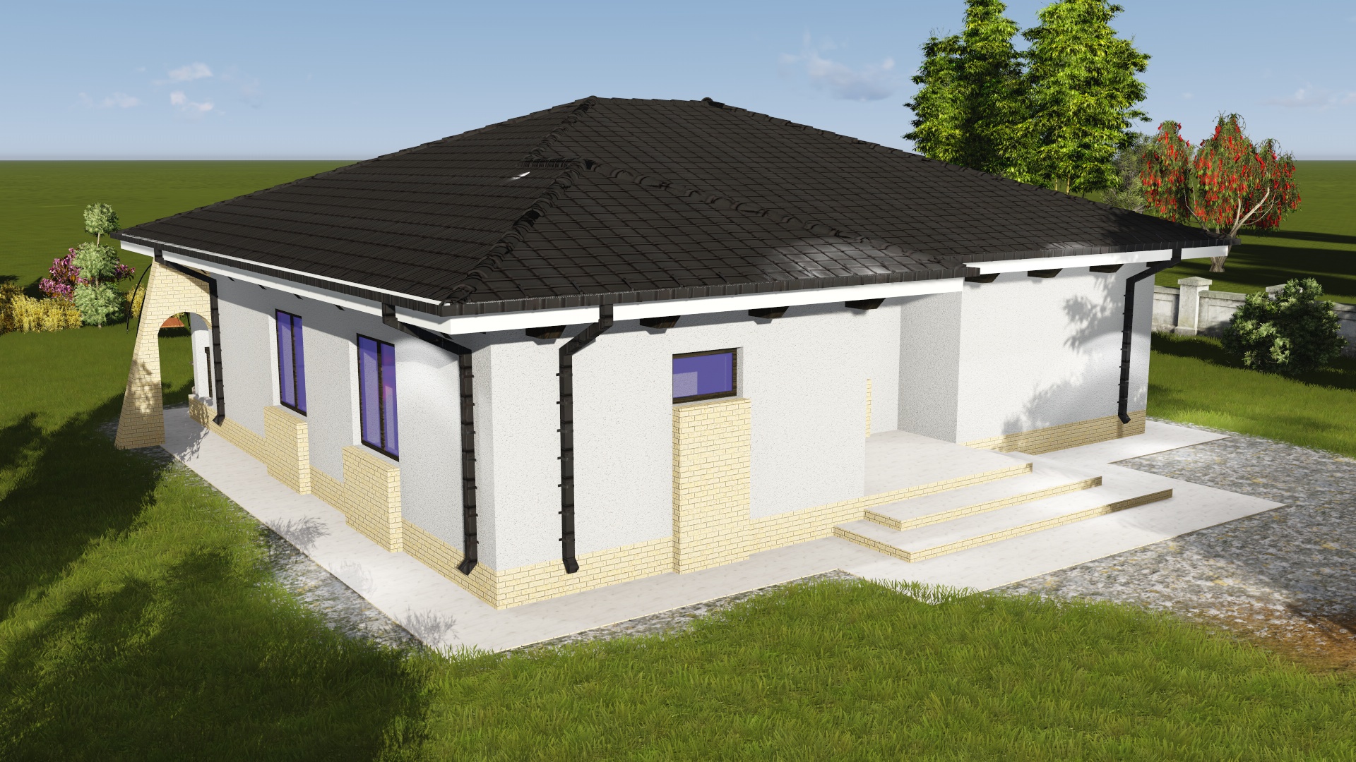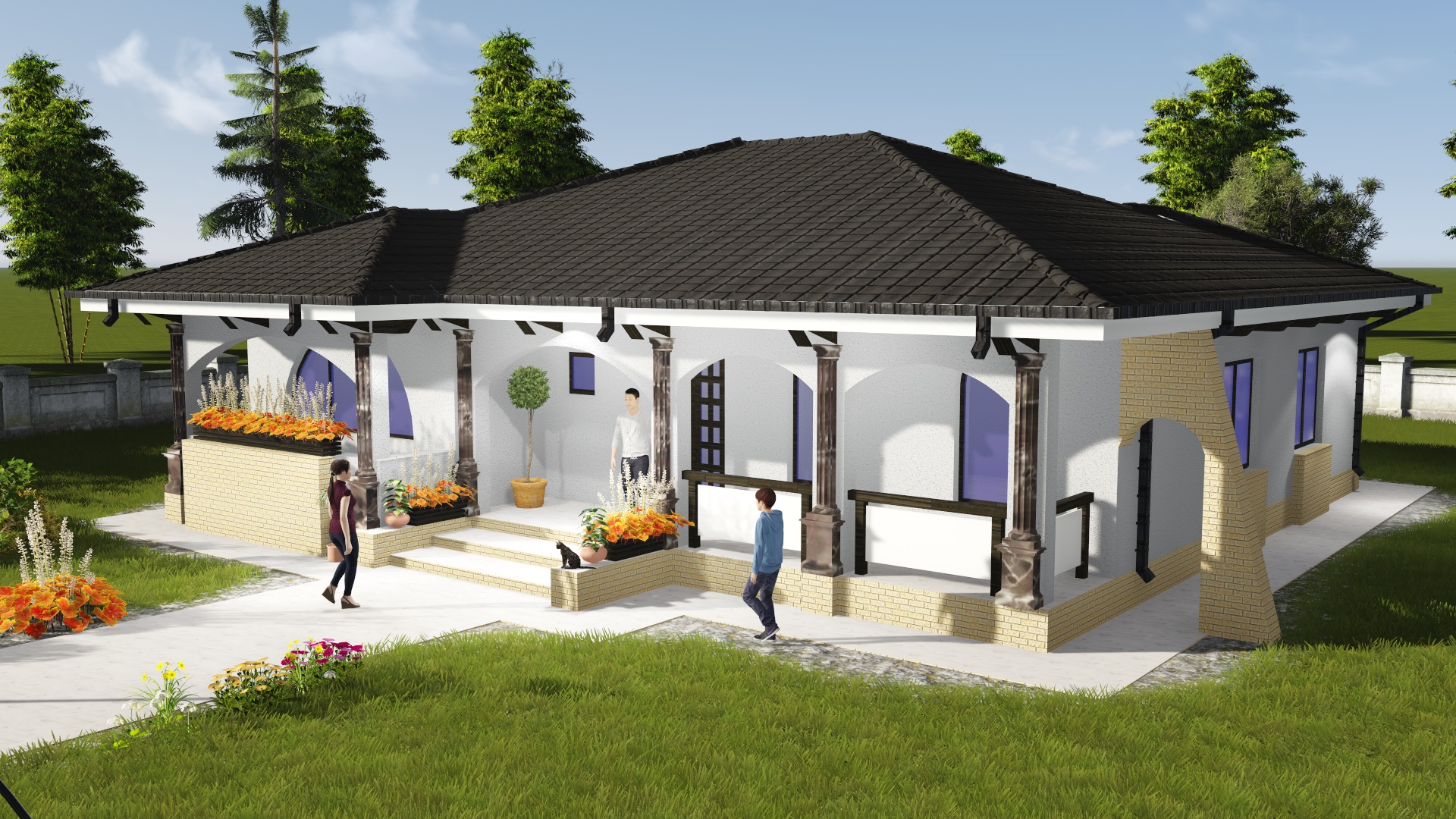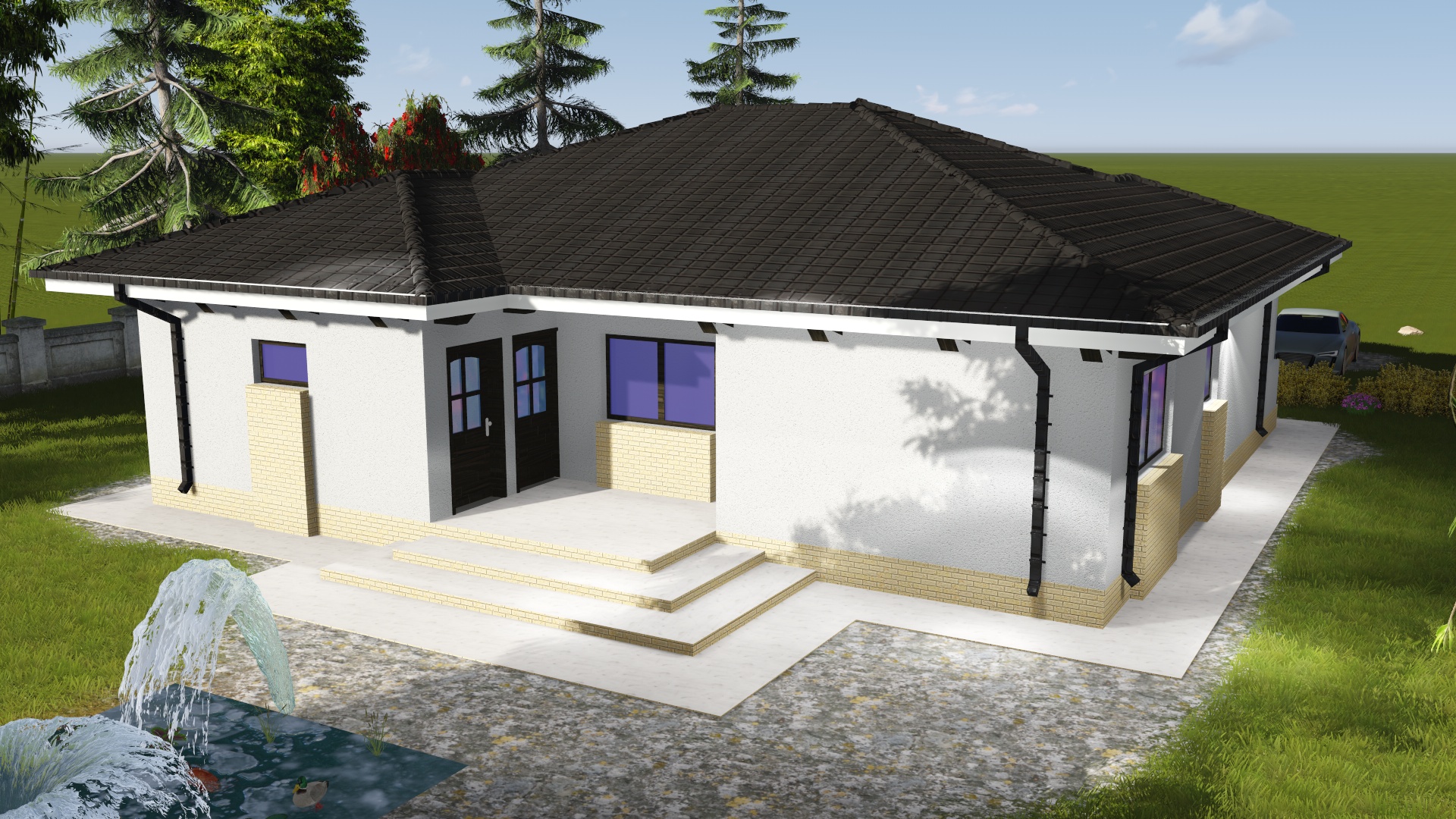 Proiectul IOV-003 este o casă parter cu arhitectură Neo-Românească reinterpretată modern, ce combină elemente tradiționale cu detalii contemporane din lemn și piatră cioplită. Cu o suprafață utilă de 105 mp, locuința oferă un living spațios, bucătărie cu acces la terasa acoperită, trei dormitoare și două băi. Construită pe structură mixtă, casa asigură eficiență energetică, costuri reduse și un confort durabil, fiind perfectă pentru familii moderne care apreciază echilibrul între estetică și funcționalitate.