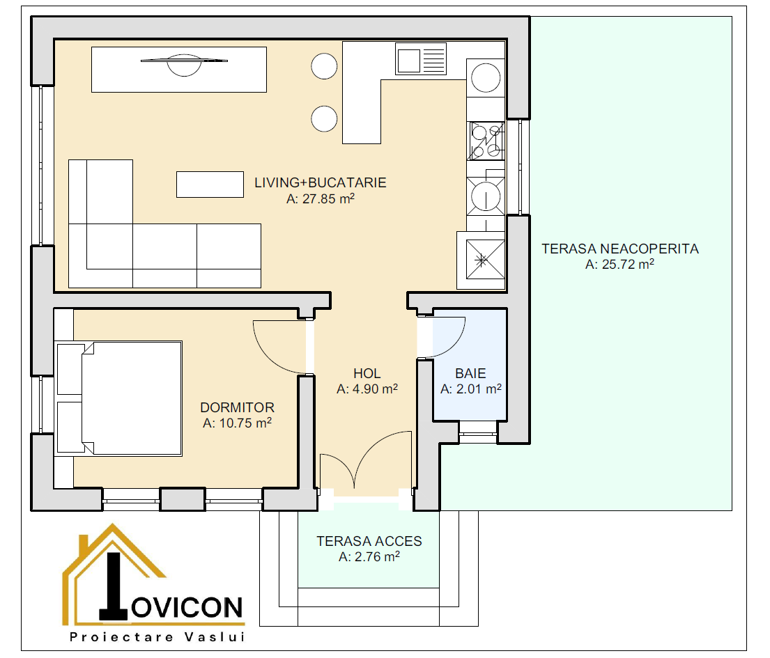 | Living + Dining + Bucătărie | 27,85 | mp |