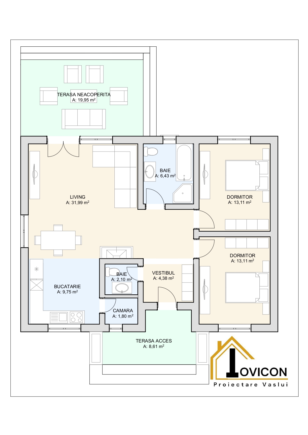 | Terasă neacoperită | 19,95 | mp |